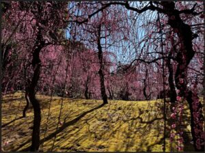一度は訪れてみたい、しだれ梅の絶景スポットです。名神高速京都南インターを出るとすぐの場所にありますが、諸般の事情から公共交通機関を使って行ってきました。早春、ほかの花々に先駆けて春の訪れを告げる花として、古来より日本人に愛されてきた梅。寒さに負けずほころぶ可憐な花は、多くの詩歌や書画の題材となっています。また、観賞用だけでなく薬用や食用、縁起物としても親しまれています。